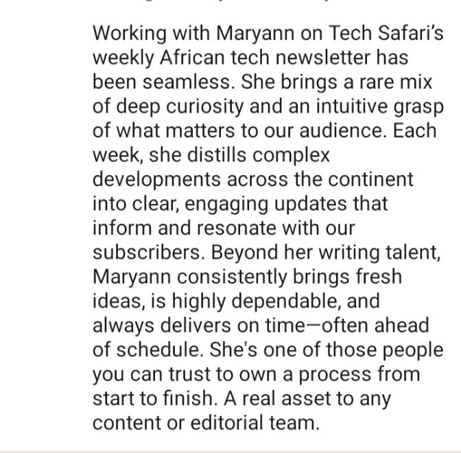 I’ve worked with and for ambitious teams building for scale across Africa and global markets. These collaborations have spanned product storytelling, content strategy, sales, marketing campaigns, and community development.Each project has been driven by clear business goals and backed by a deep understanding of the audience